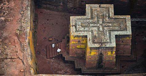 Ο ναός του Αγίου Γεωργίου στην Λαλιμπέλα της Αιθιοπίας, Χτισμένος στις αρχές του δέκατου τρίτου αιώνα και θεωρείται ως Όγδοο Θαύμα του Κόσμου.
