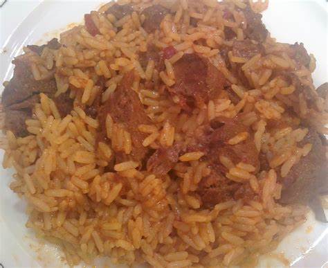 Μετράμε το ζουμί να είναι σε διπλάσια ποσότητα από το ρύζι, αν χρειαστεί προσθέτουμε ζεστό νερό. Πλένουμε καλά το ρύζι και το ρίχνουμε στο ζωμό. Ανακατεύουμε στην αρχή να μη σβωλιάσει και αφήνουμε να σιγοβράσει μέχρι να πιει τα υγρά του. Ρίχνουμε και το κρέας και κατεβάζουμε απ τη φωτιά.