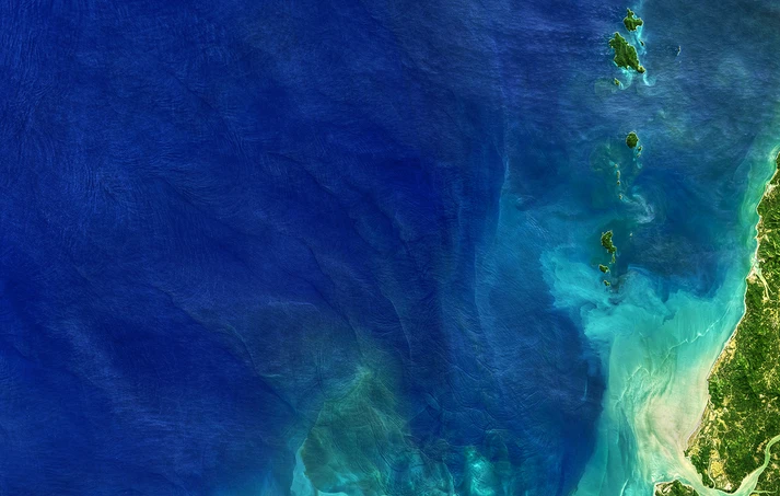 Η μάζα γης, που σχηματίστηκε ανοιχτά των ακτών του Αζερμπαϊτζάν, καταγράφηκε από τους δορυφόρους Landsat 8 και 9 της NASA σε διάφορες χρονικές στιγμές: στις 18 Νοεμβρίου 2022, στις 14 Φεβρουαρίου 2023 και στις 25 Δεκεμβρίου 2024.