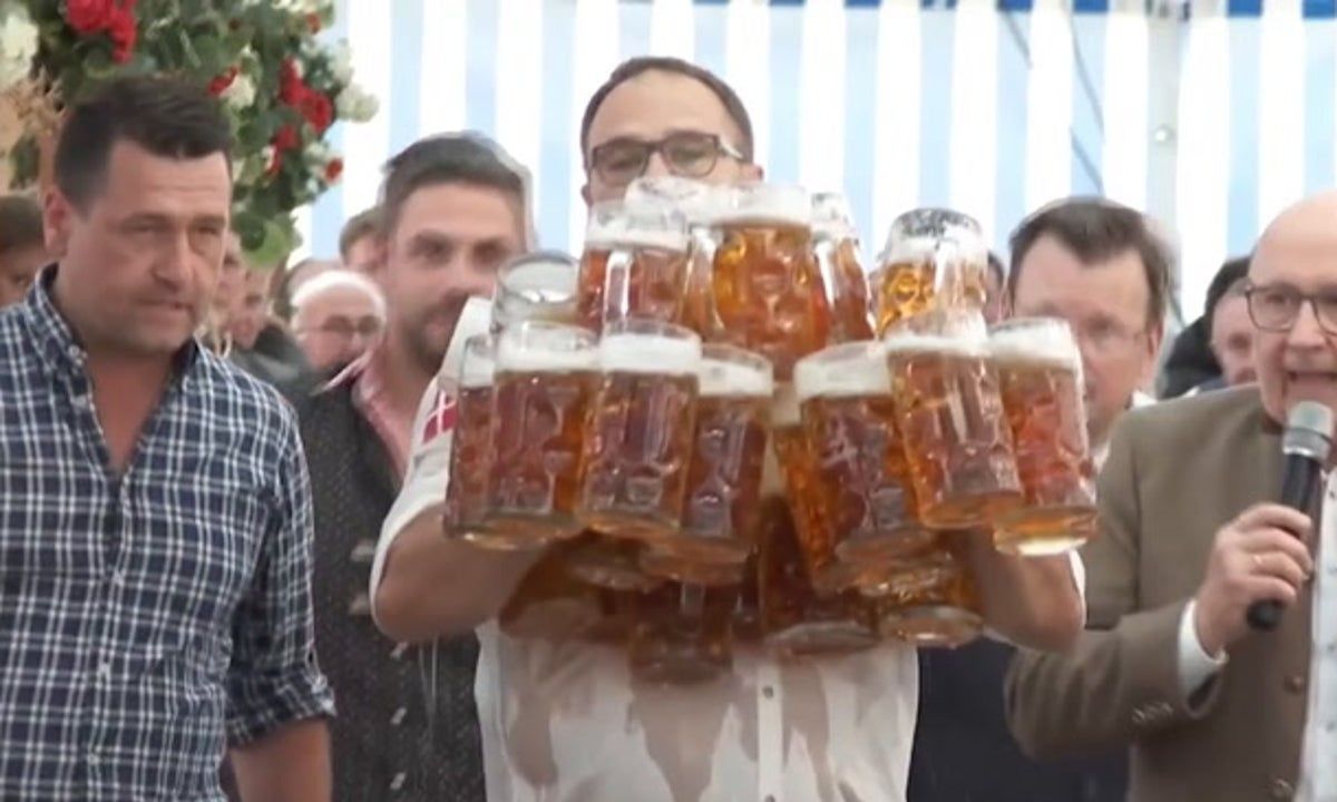 Ο Γερμανός Όλιβερ Στρούεμπφελ έβαλε στο δίσκο σερβιρίσματος ούτε μία, ούτε δύο, αλλά 31 μεγάλα ποτήρια μπύρας σε μία απόπειρα να καταρρίψει το δικό του ρεκόρ ταυτόχρονου σερβιρίσματος (κατάφερε να μεταφέρει 29 ποτήρια το 2017), ωστόσο, δεν τα κατάφερε.