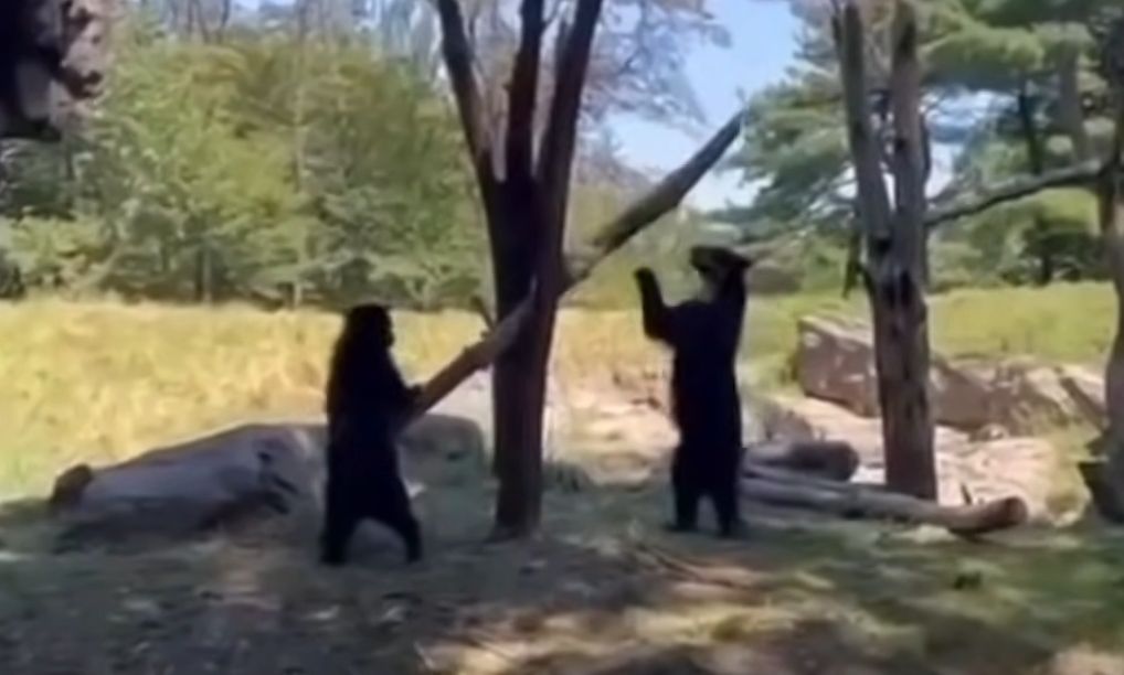 Το βίντεο που κατέγραψε επισκέπτης του ζωολογικού κήπου, δείχνει τις αρκούδες να βρίσκουν ένα μεγάλο κλαδί και να το μετατρέπουν σε… αυτοσχέδια τραμπάλα, παίζοντας και ισορροπώντας με