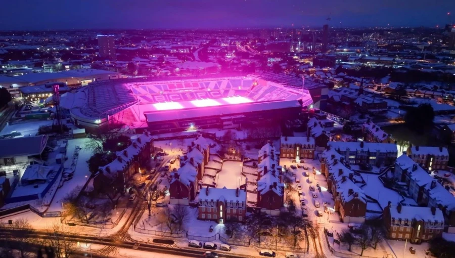 Στάφορντσαϊρ.Ο μετεωρολόγος του BBC, Σάιμον Κινγκ, δήλωσε ότι η νεφοκάλυψη και το χιόνι που πέφτει σημαίνουν ότι ο ουρανός θα μπορούσε να είναι πιο ανακλαστικός, και το ποδοσφαιρικό γήπεδο της Μπέρμιγχαμ Σίτι, το Σεντ Άντριους, παρουσιάστηκε ως πηγή φωτός.
