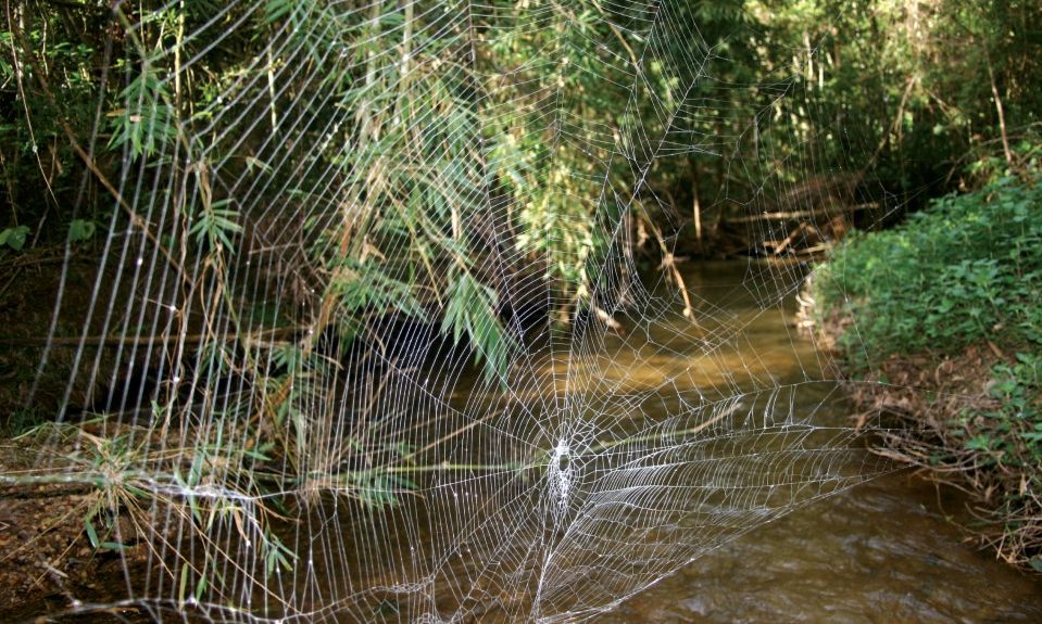 Η αράχνη Darwin's bark κατασκευάζει ιστούς που μπορούν να εκτείνονται σε πάνω από 30 τετραγωνικά πόδια, αιωρούμενοι στον αέρα πάνω από ποτάμια.